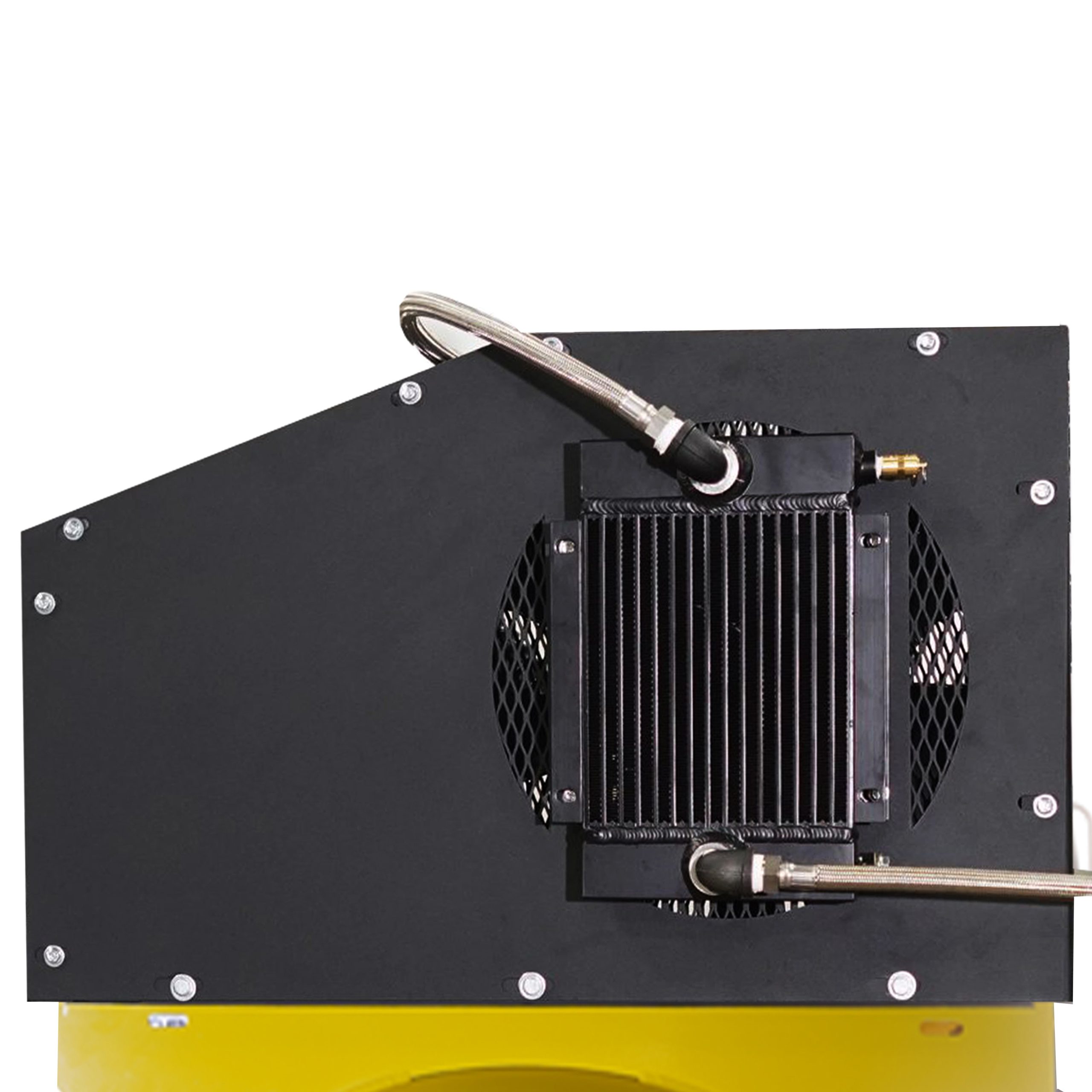Pressure Lubrication is the second type of lubrication systems. This system is more technically advanced and a far more precise method to deliver oil to critical parts of the pump, resulting in longer pump life. The oil is pumped through an oil filter and into the pump where it is then recycled and reused. Since the oil pump is delivering the oil more efficiently the viscosity of the oil is less critical than with a splash system. In the air compressor industry, it is typically more costly to upgrade to pressure lubrication systems. *Our high efficiency manufacturing facility 0to the tank. With this radiator, we target outlet air to the tank within 10 degrees of ambient temperature.