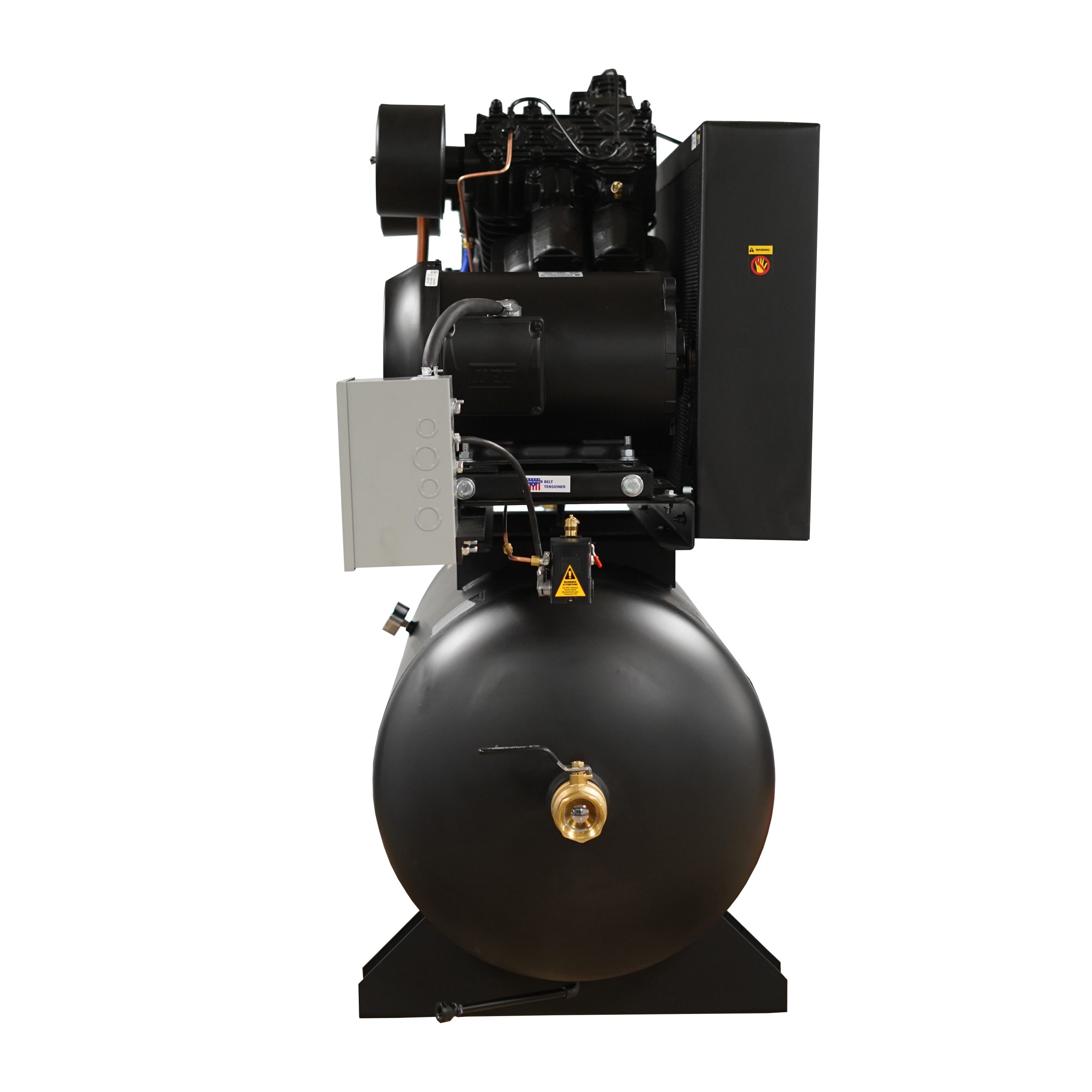 EMAX Industrial Plus 25HP V4 96CFM 3 Phase 208V 2-Stage 120 Gal. Horizontal Stationary Electric Air Compressor-W/ Pressure Lube Pump , Isolator Pads, Belt Tensioner, Continuous Run, Auto Drain w/ 115CFM Dryer