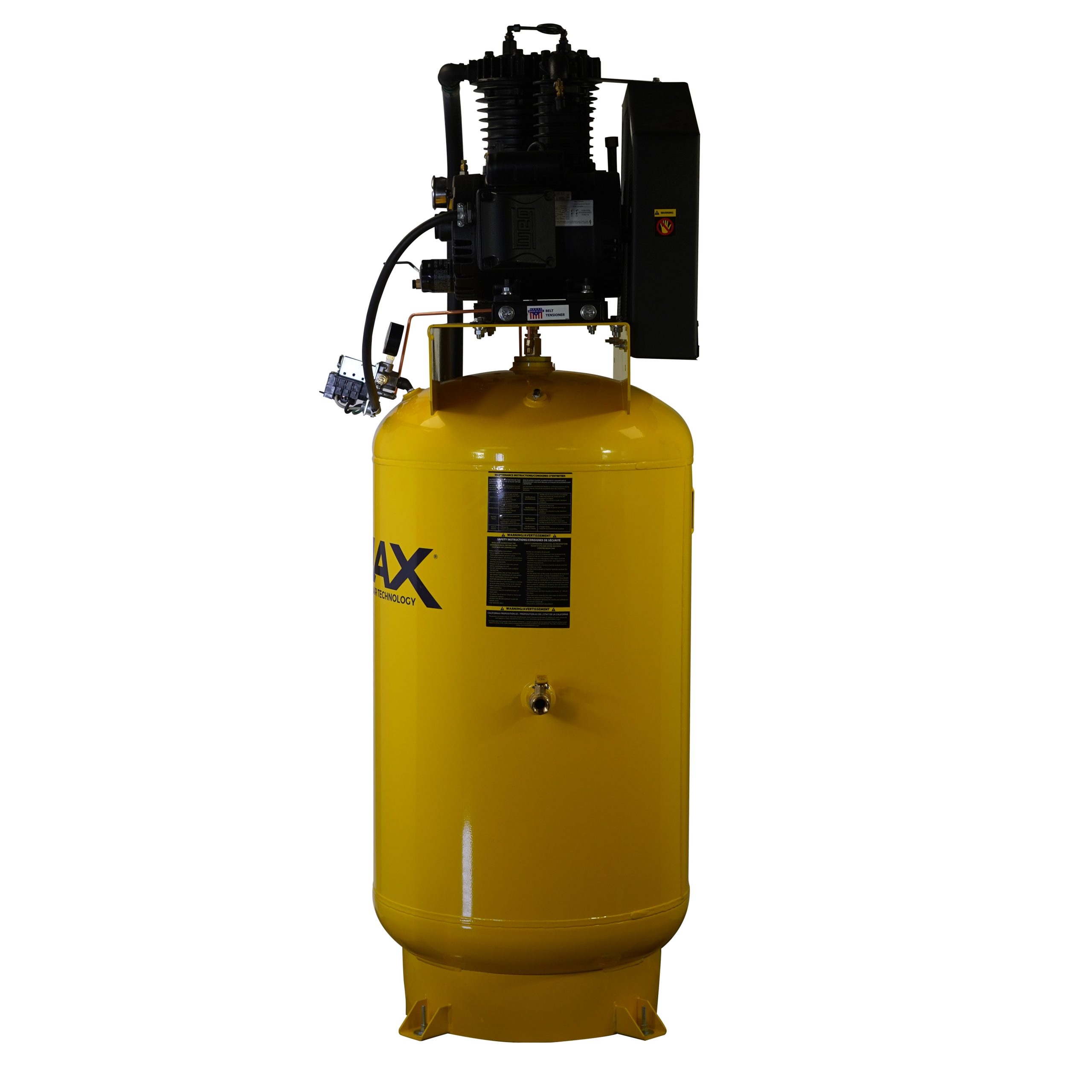 Piston compressors come optional with a belt tensioner. This belt tensioner allows you to easily and quickly tighten your belts. These tensioners also have a double bolt tension device that allows you to keep the belts in perfect alignment. No pry bars needed to tighten your belts!